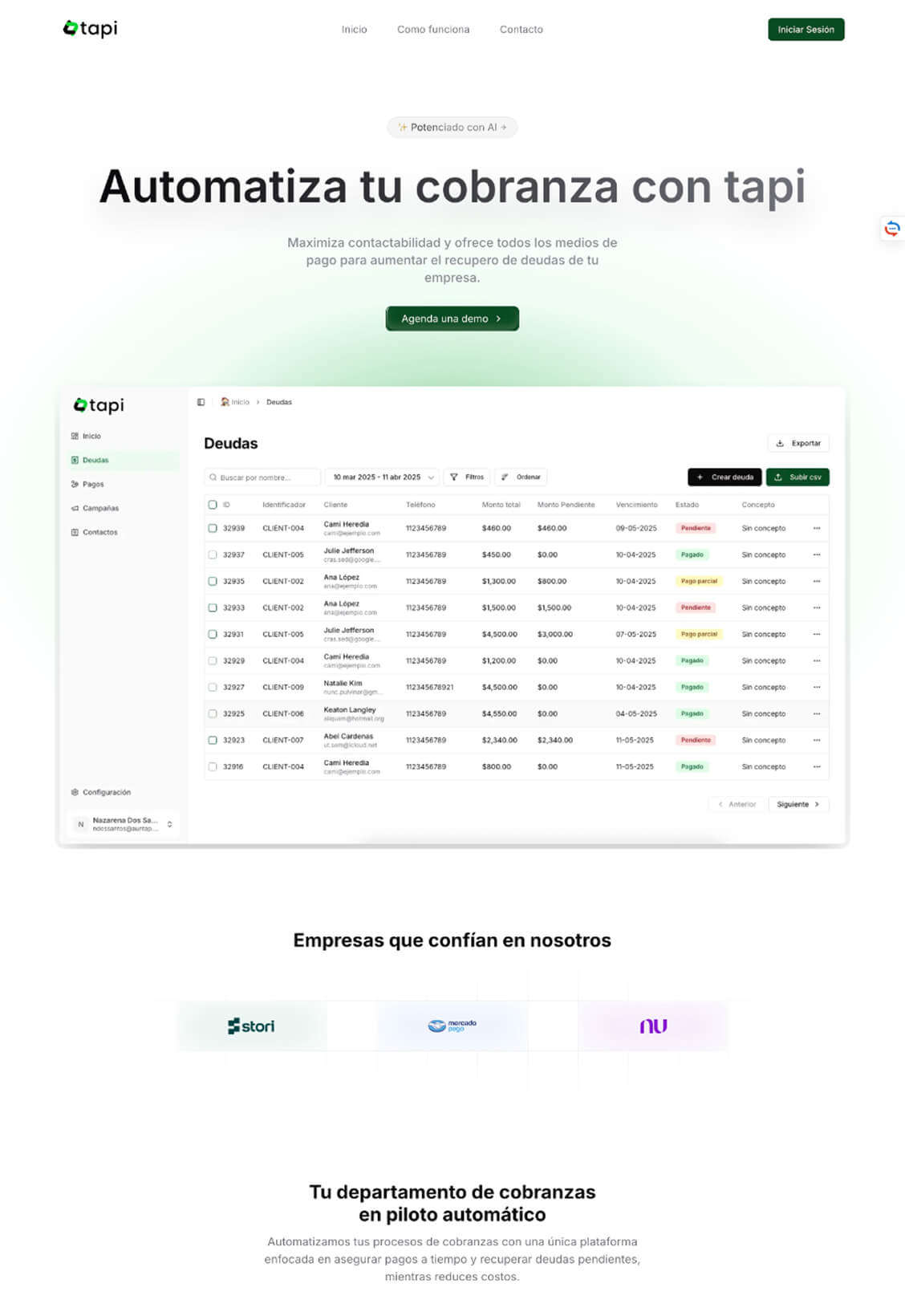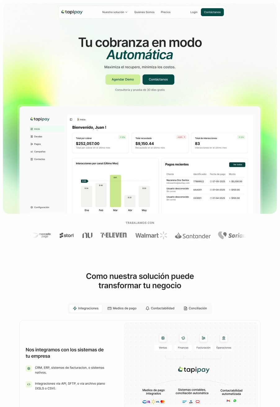 Tapipay is a payments network that enables organizations to automate up to 80% of their collections.